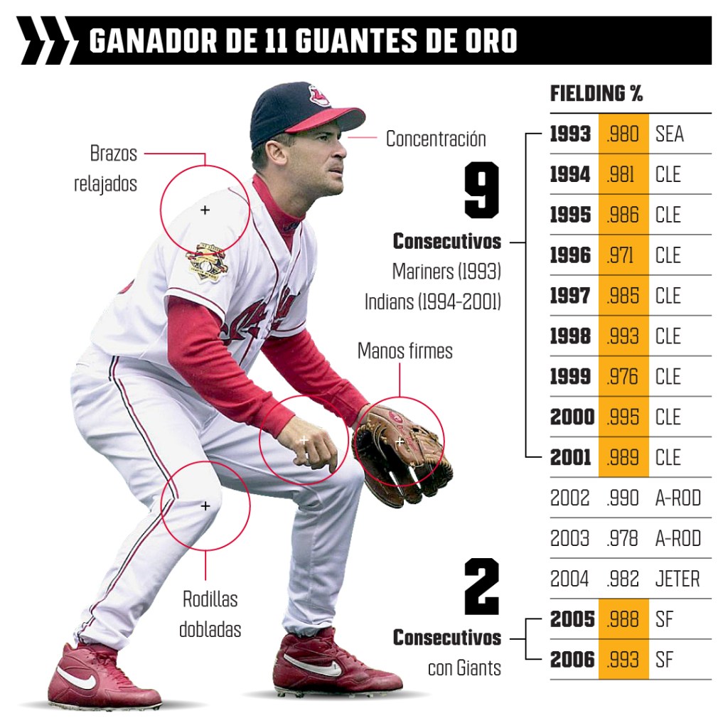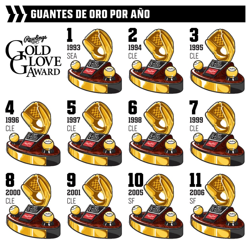 Vizquel logró 11 Guantes de Oro en 24 temporadas en las Grandes Ligas, nueve en la Liga Americana y dos en la Liga Nacional.